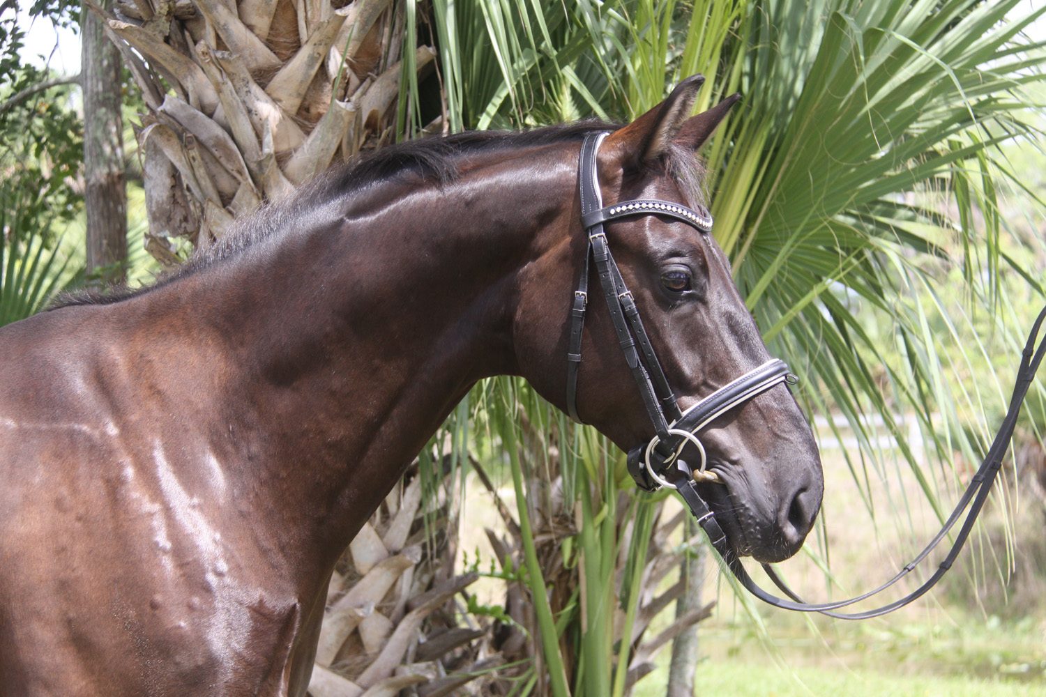 Dynamico is a flashy mover ready to shine with a new partner. He is schooling the change and has solid, beautiful lateral work. Ready to show at Second level but this young horse has the talent to go far. His striking appearance and commanding presence make everyone take a second look.  He is a true FEI prospect for an ambitious Amateur, Young Rider or professional. This horse is a pleasure to work with, and will make one lucky rider very happy as he rises to the occasion when challenged with grace and ability. Get a rising star for your show barn.