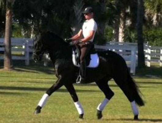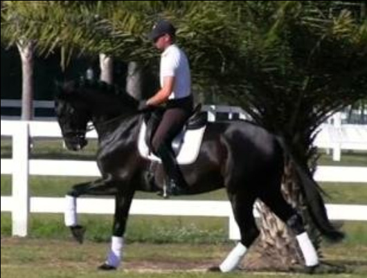**SOLD**Very special Lusitano gelding just turned 5-years-old. Fandango has three super gaits with the talent, potential, and presence to excel at upper levels. He is black, beautiful. and 16.1 with lovely temperament and character. He is comfortable to sit, loves to hack, and is not spooky. He has a good energy level and is not lazy or hot.